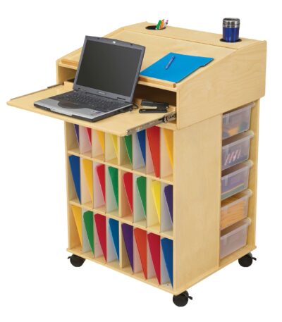 A portable hand washing station without plumbing at just the right height for young ones! Encourage hand washing habits and help keep everyone healthy while meeting licensing requirements. Water is heated by the tankless, on-demand water heater. The water pump has a flow rate of .35 gallons per minute and the faucet features a water-saving aerator. The tank for the non-potable clean water holds five gallons while the waste water tank holds six gallons. There is a catch tray under the tanks. Mistake-proof connectors means the clean and waste water tanks cannot be inadvertently switched. Plastic sink is approximately 5″ deep. Power switch inside the cabinet and openings for cord management. Mobile tank cart and filler hose with funnel available separately in Accessories Kit. ONLY AVAILABLE IN UNITED STATES.