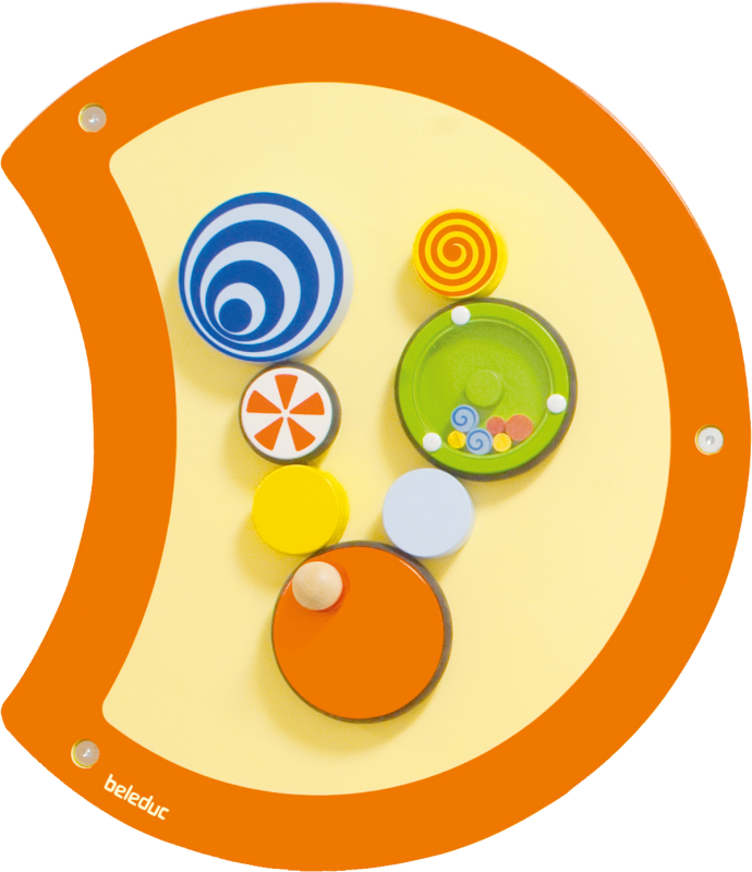 A clock that offers a playful access to the topic “time”. The small wheels show the four different seasons and four different times of a day.