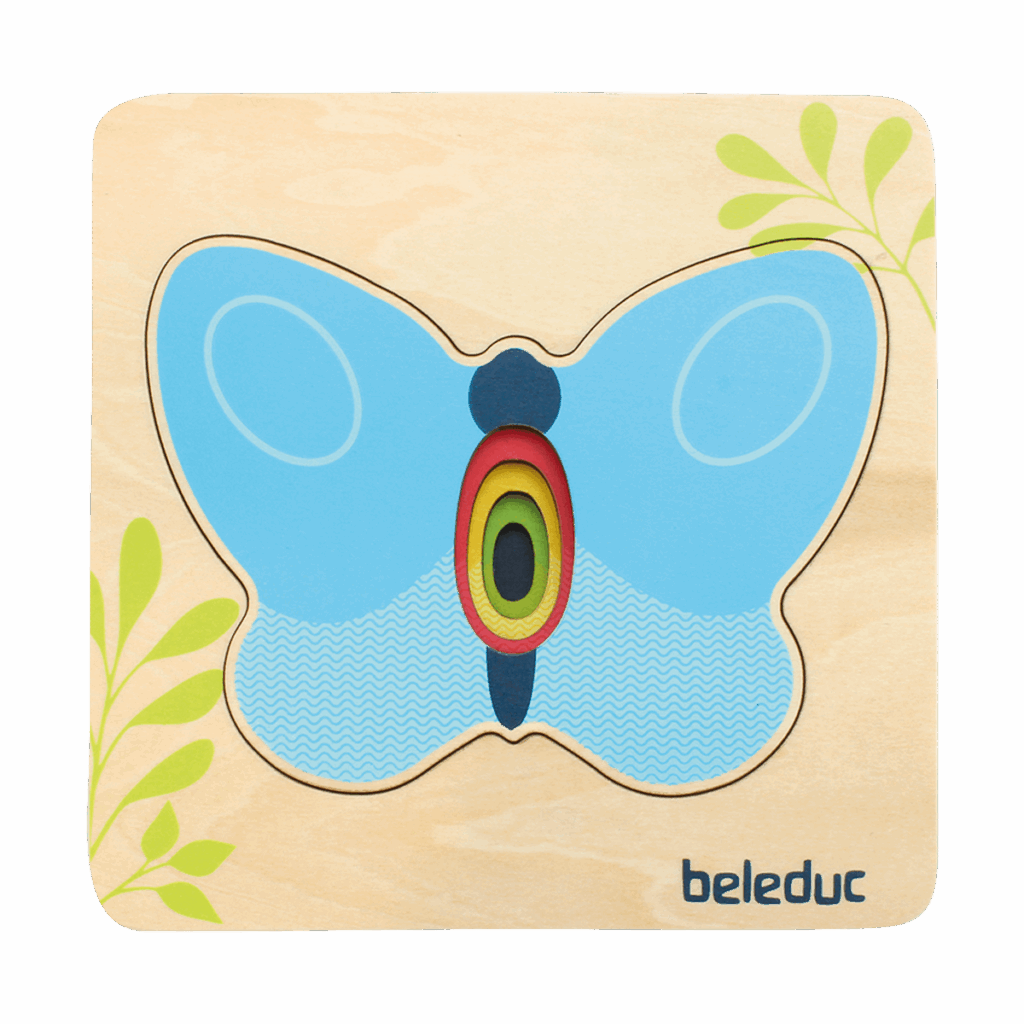 With this layer puzzle for the youngest even babies can easily explore layer by layer. The solid and easy to grab wooden puzzle pieces help the youngest develop first basic motor skills.