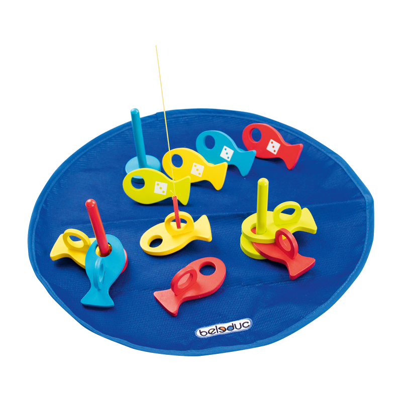 To the fish, ready, go! Who can manage to move 3 fish of the same colour onto the rod faster? Or stack as many fish as you can and then later check the underside of the fish to see who got more points! A fishing game with lots of different ways to play!